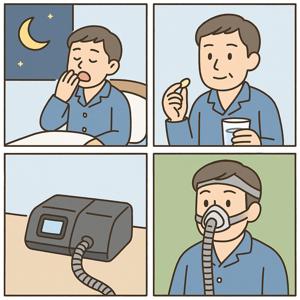 CPAPを導入した初期は、マスクの圧迫感や空気の流れに体が驚き、寝つきにくい夜が続きました。私は主治医に相談し、短期間だけ睡眠導入剤を併用。装着への慣れが進むと、導入剤なしでも自然に眠れるようになり、現在はCPAP単独で十分に休めています。